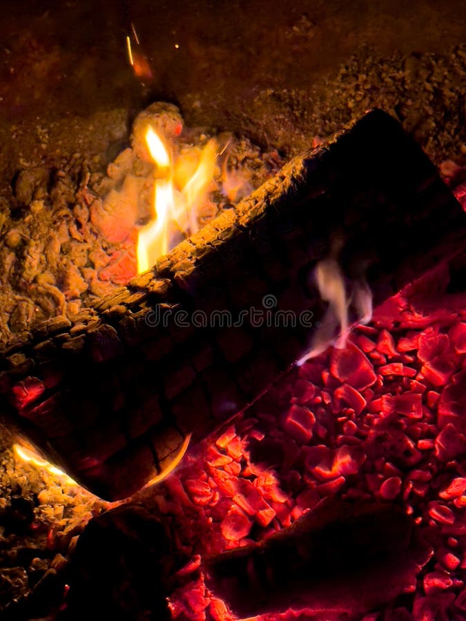 A Piece of Wood Burning in a Fire Pit Stock Image Image of charred