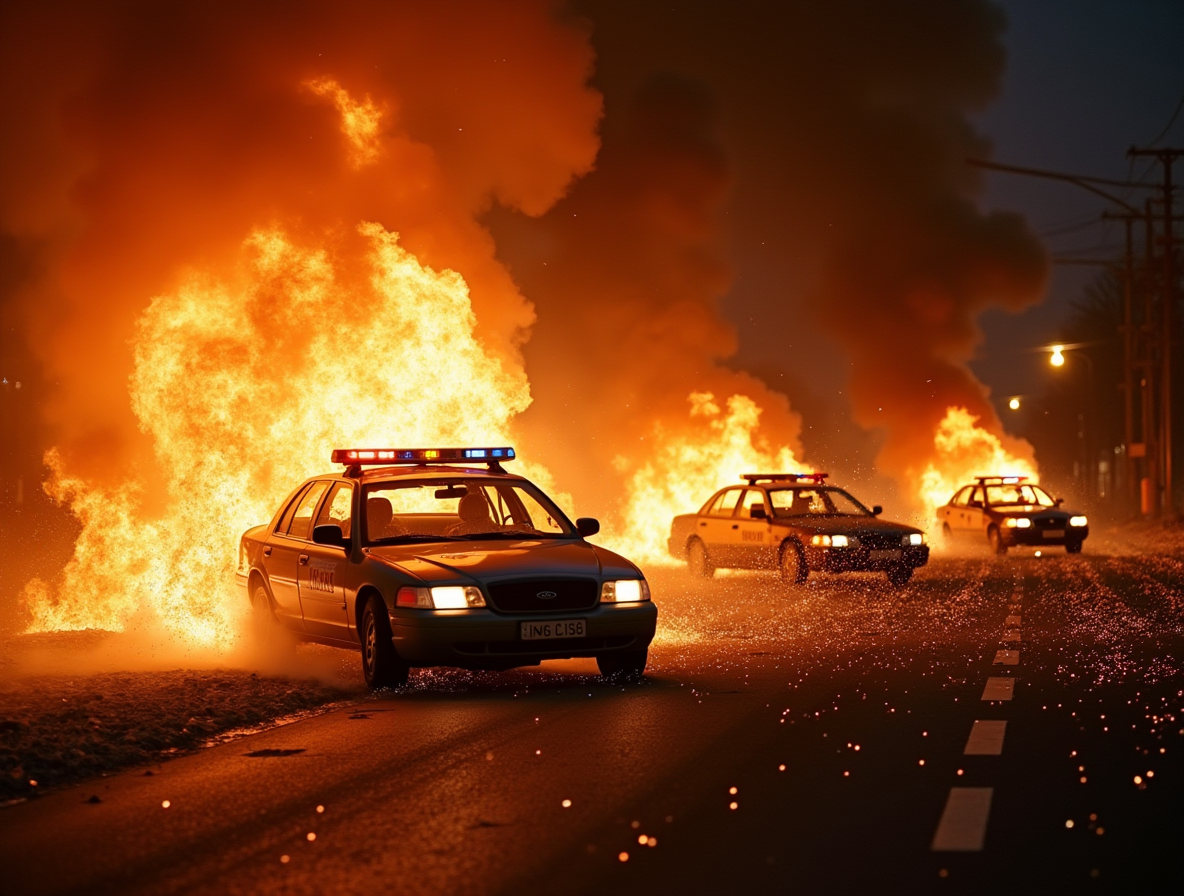Police Cars on Fire Krea