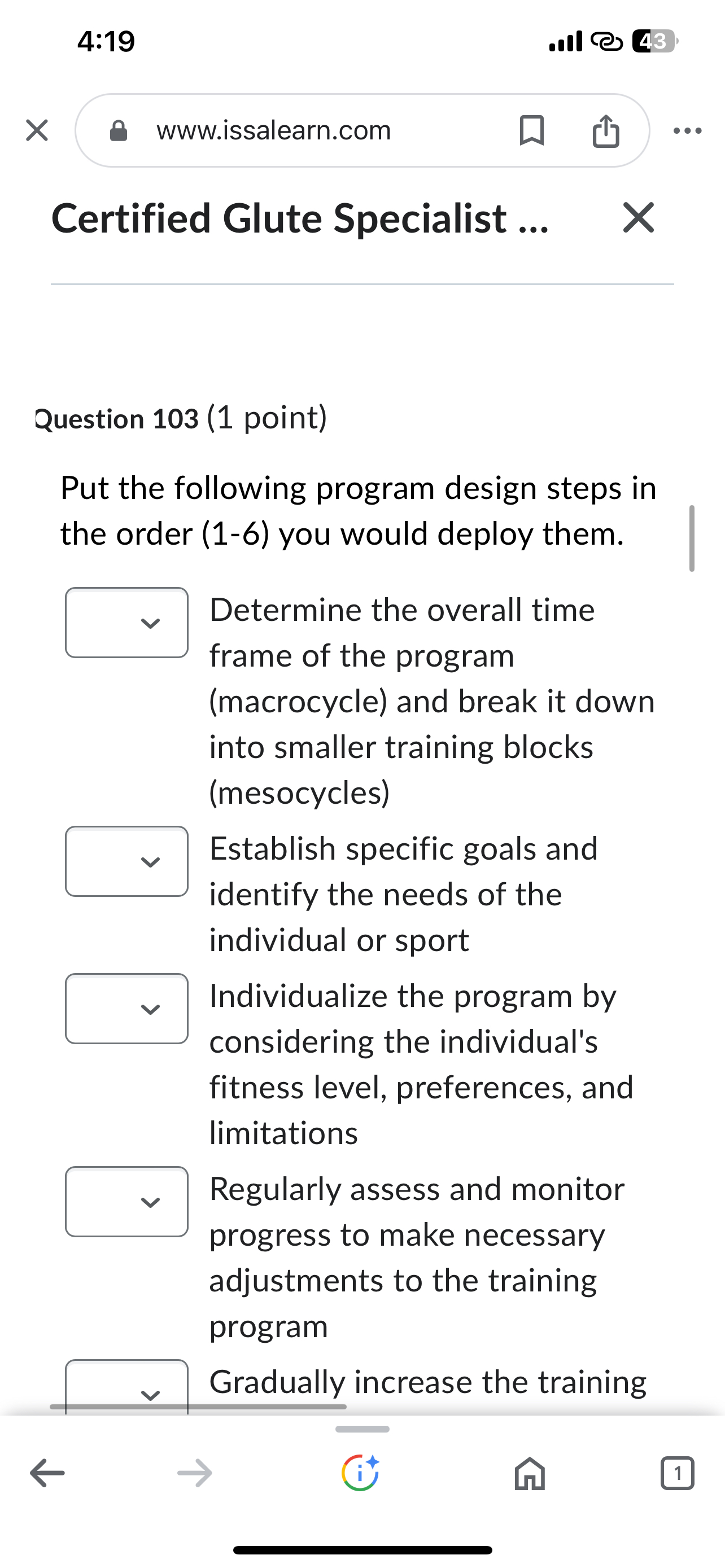 Solved 4:19www issalearn comCertified Glute Specialist Chegg com