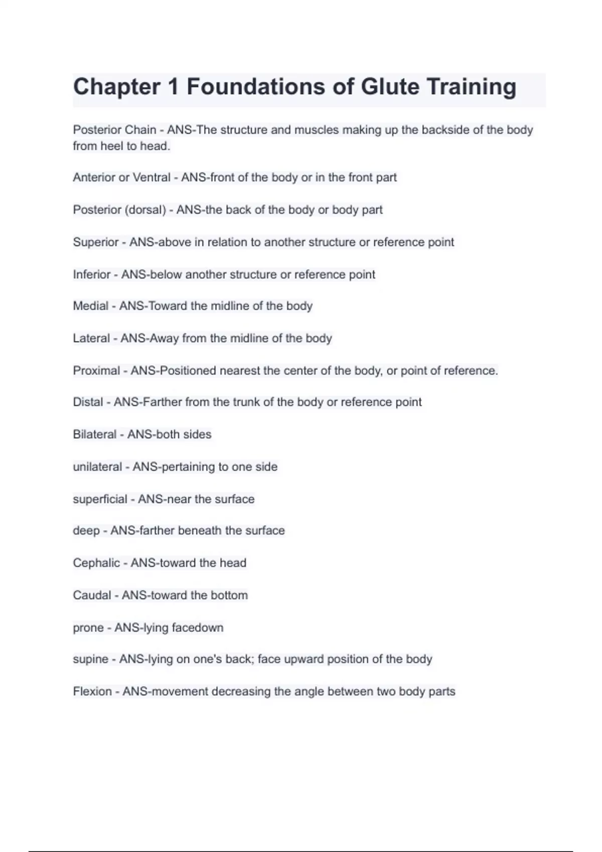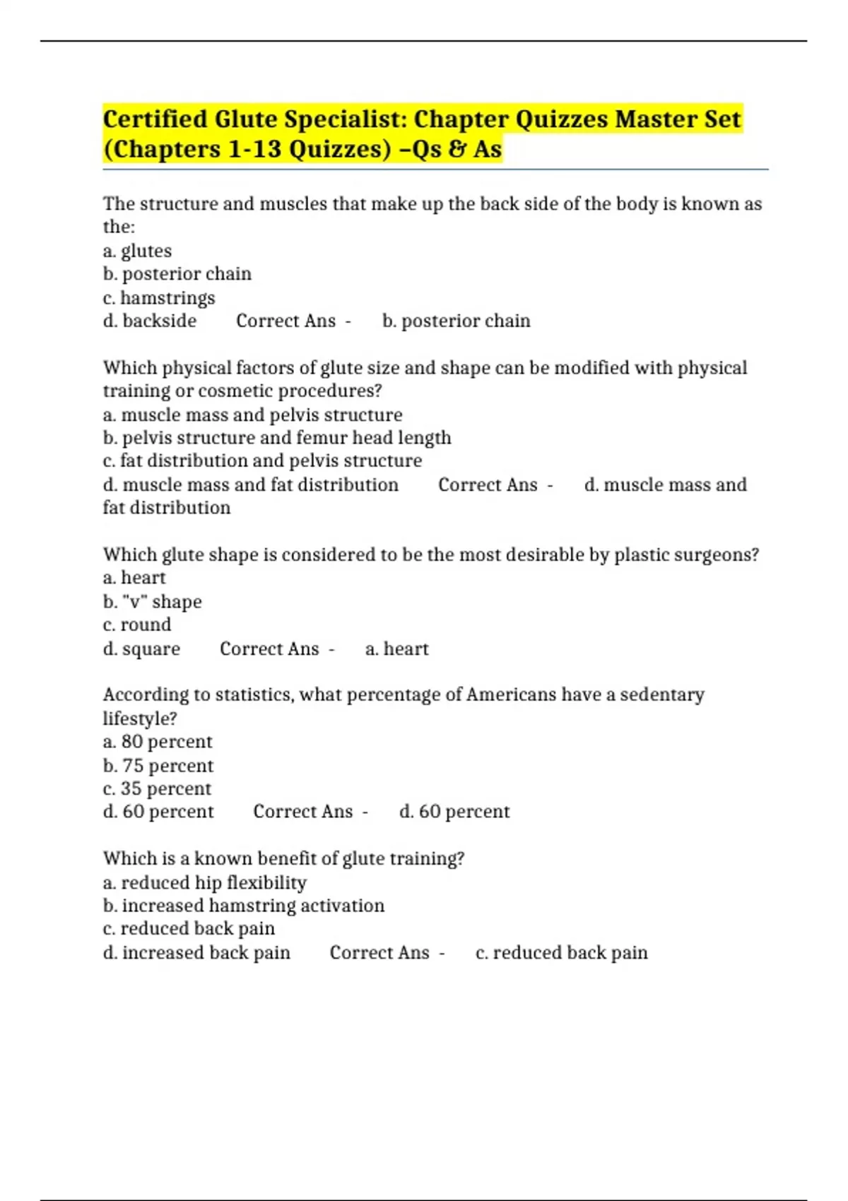 Certified Glute Specialist: Chapter Quizzes Master Set (Chapters 1 13
