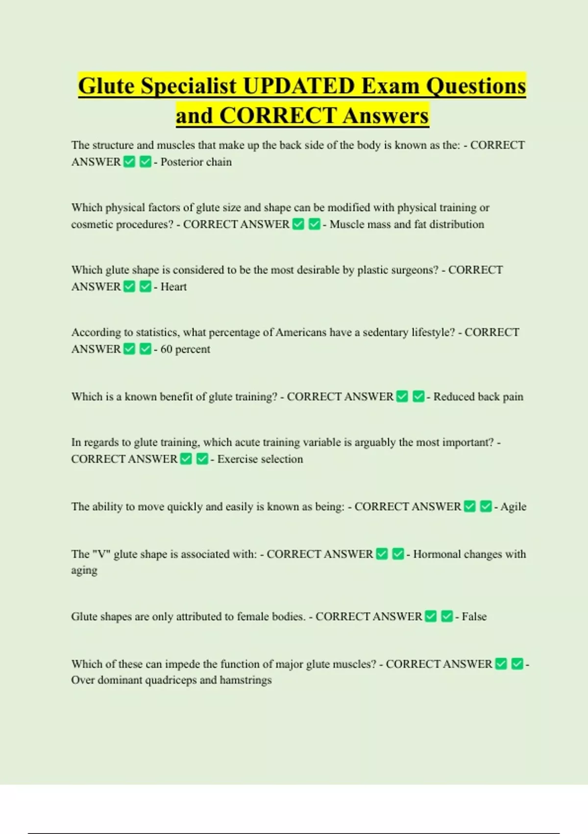 Glute Specialist UPDATED Exam Questions and CORRECT Answers Glute