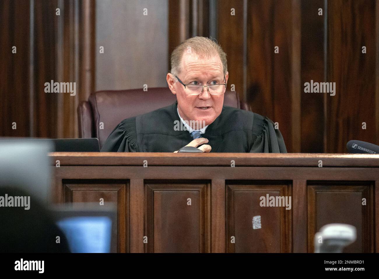 Judge Timothy Walmsley gestures during the trial of William quot Roddie