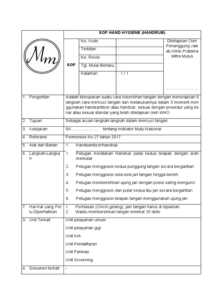 Restaurant Sop Template prntbl concejomunicipaldechinu gov co