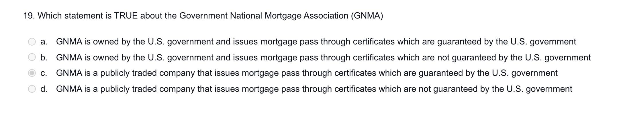 Solved GNMA role is to provide insurance to pass through Chegg com