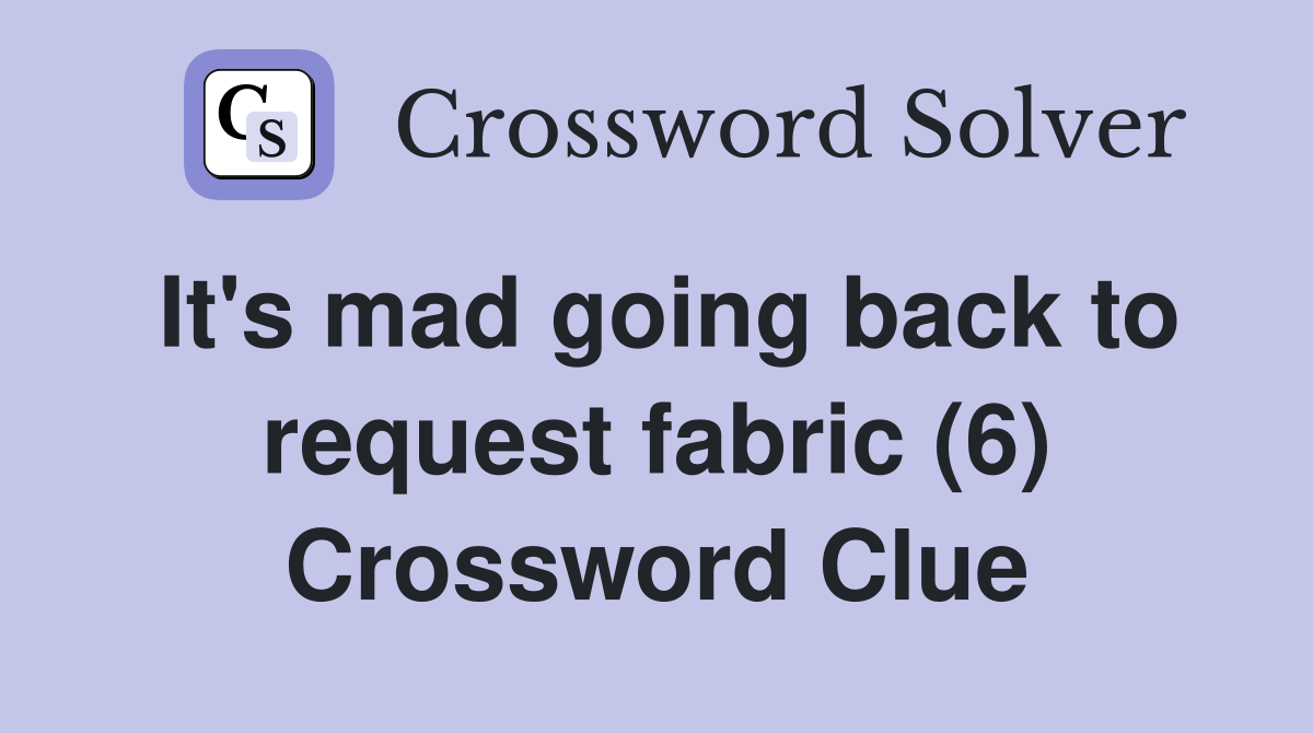 It s mad going back to request fabric (6) Crossword Clue Answers