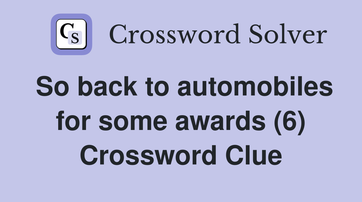 So back to automobiles for some awards (6) Crossword Clue Answers