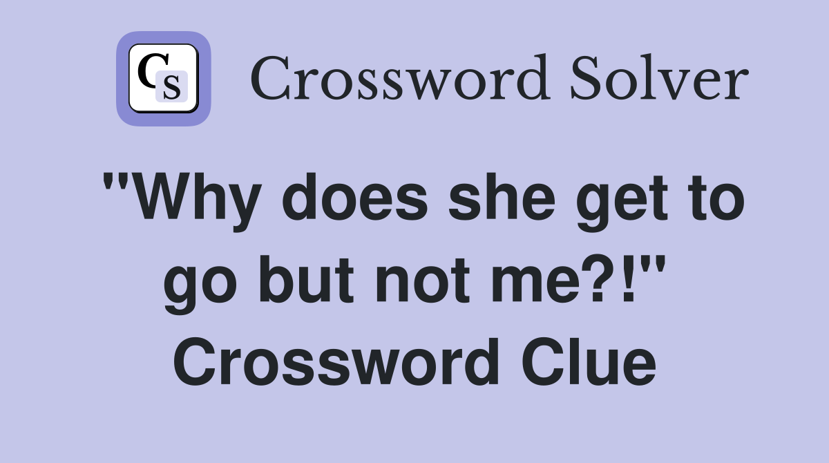 quot Why does she get to go but not me? quot Crossword Clue Answers