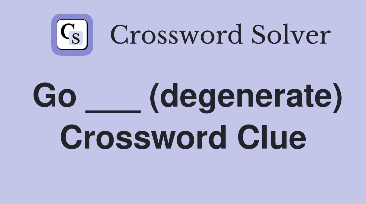 Go (degenerate) Crossword Clue Answers Crossword Solver