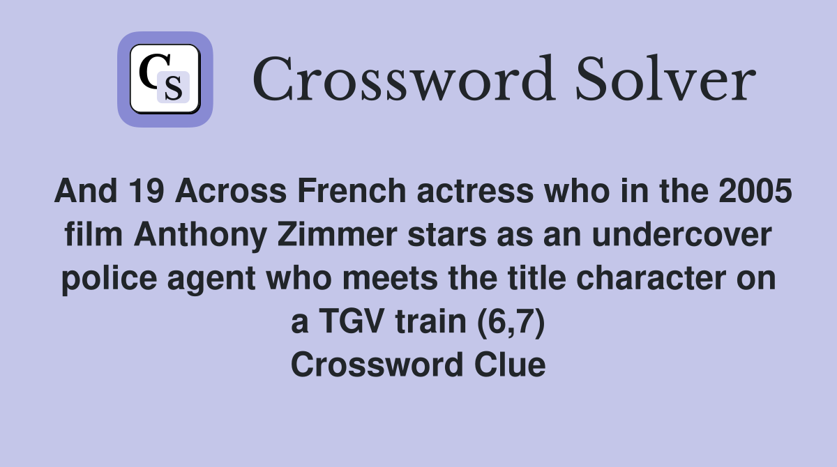 And 19 Across French actress who in the 2005 film Anthony Zimmer stars