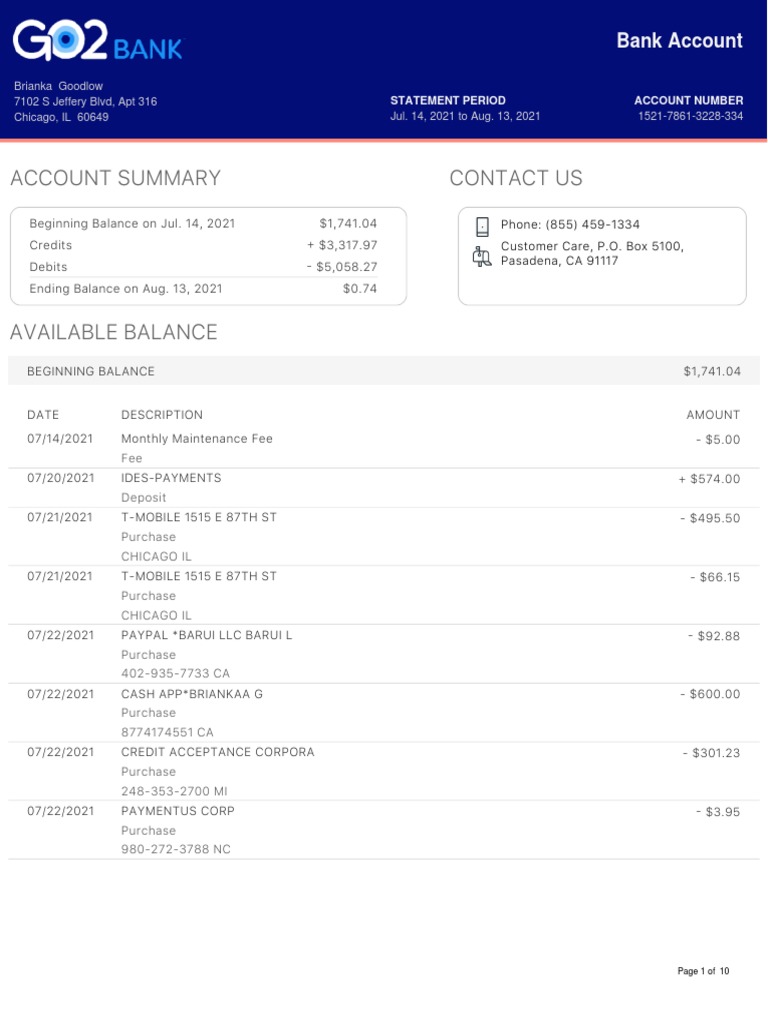 Go2bank Statement Template