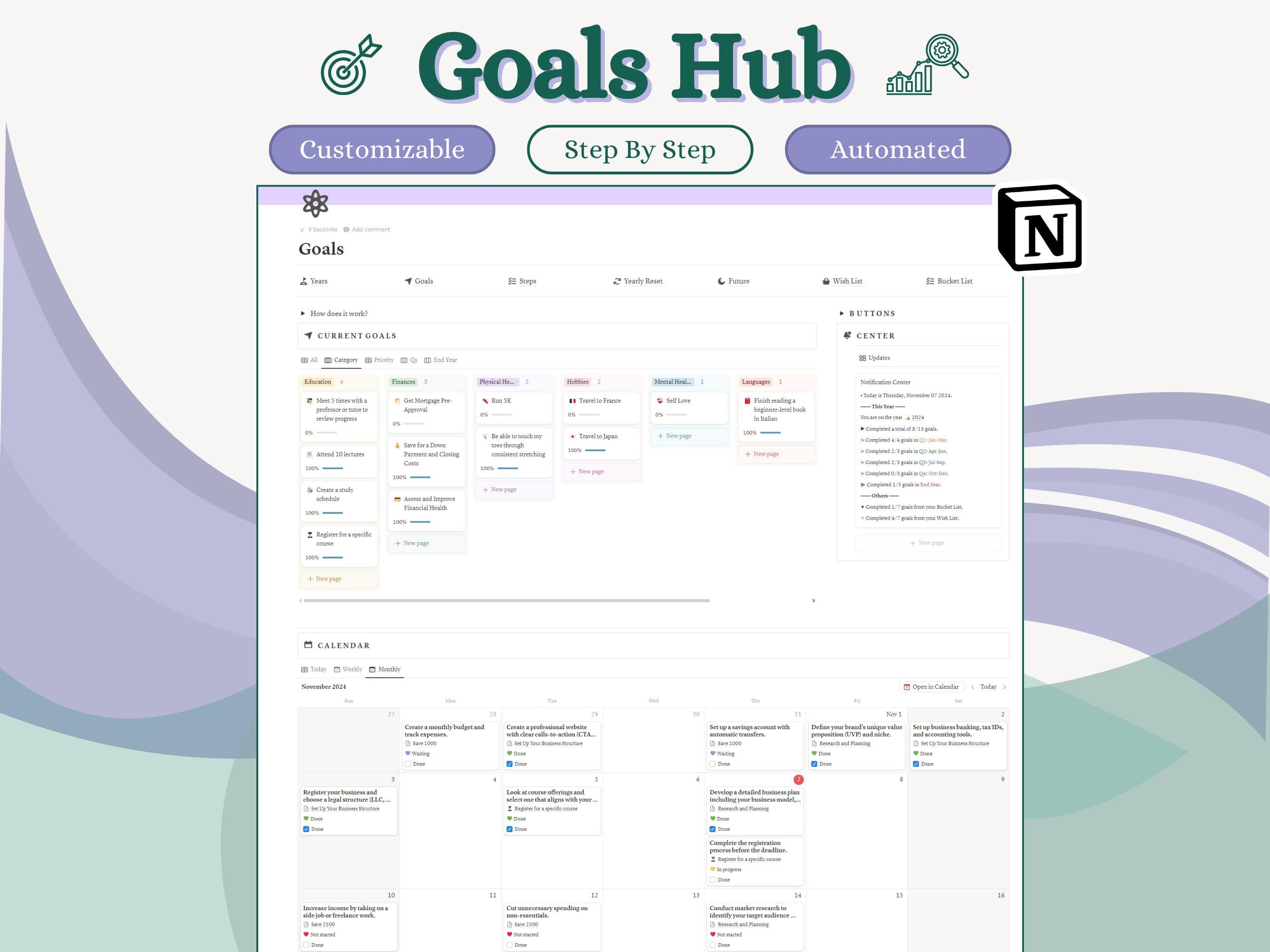 Notion Goals for $5 by Auctor Productivity Notion Template
