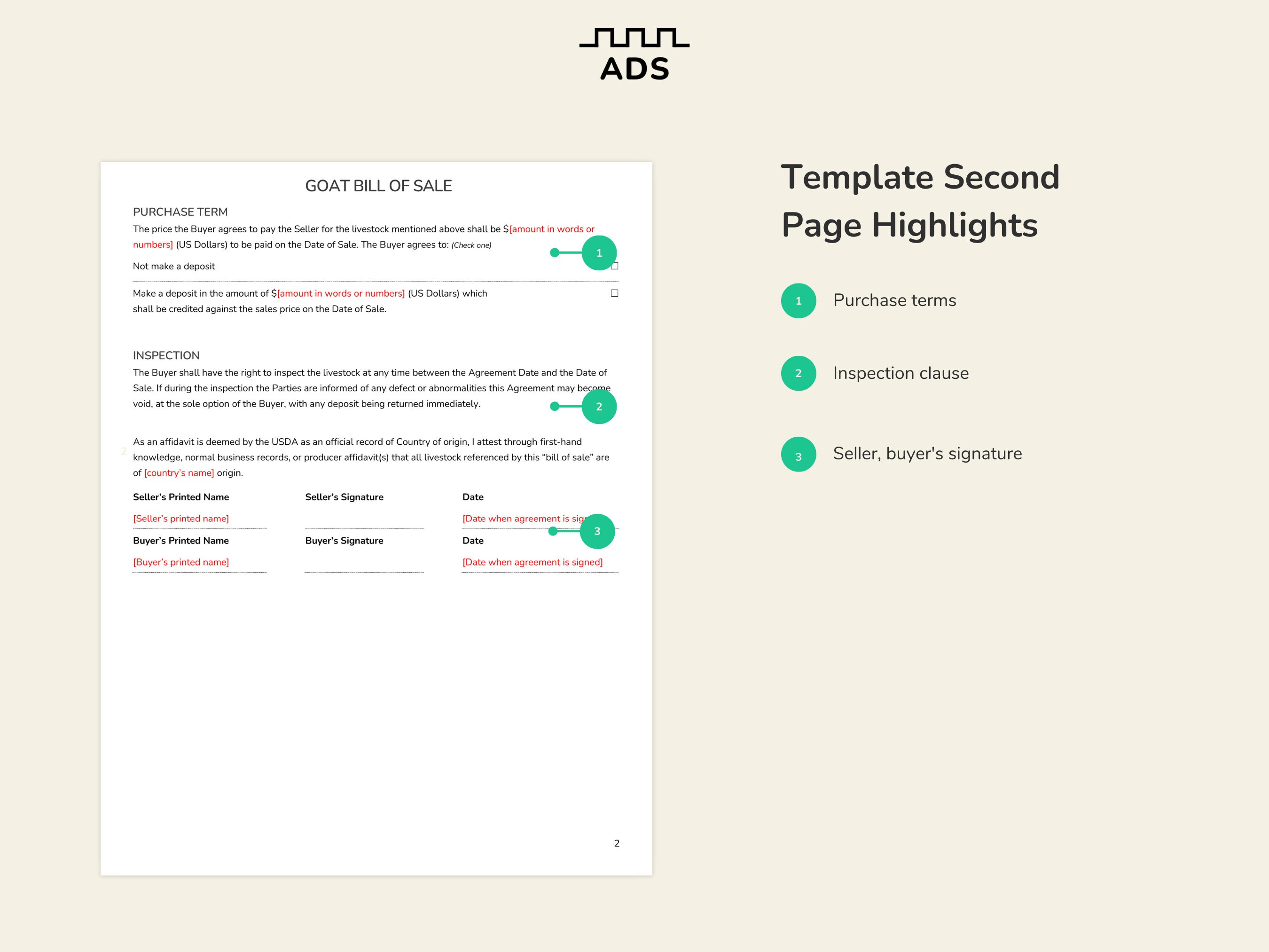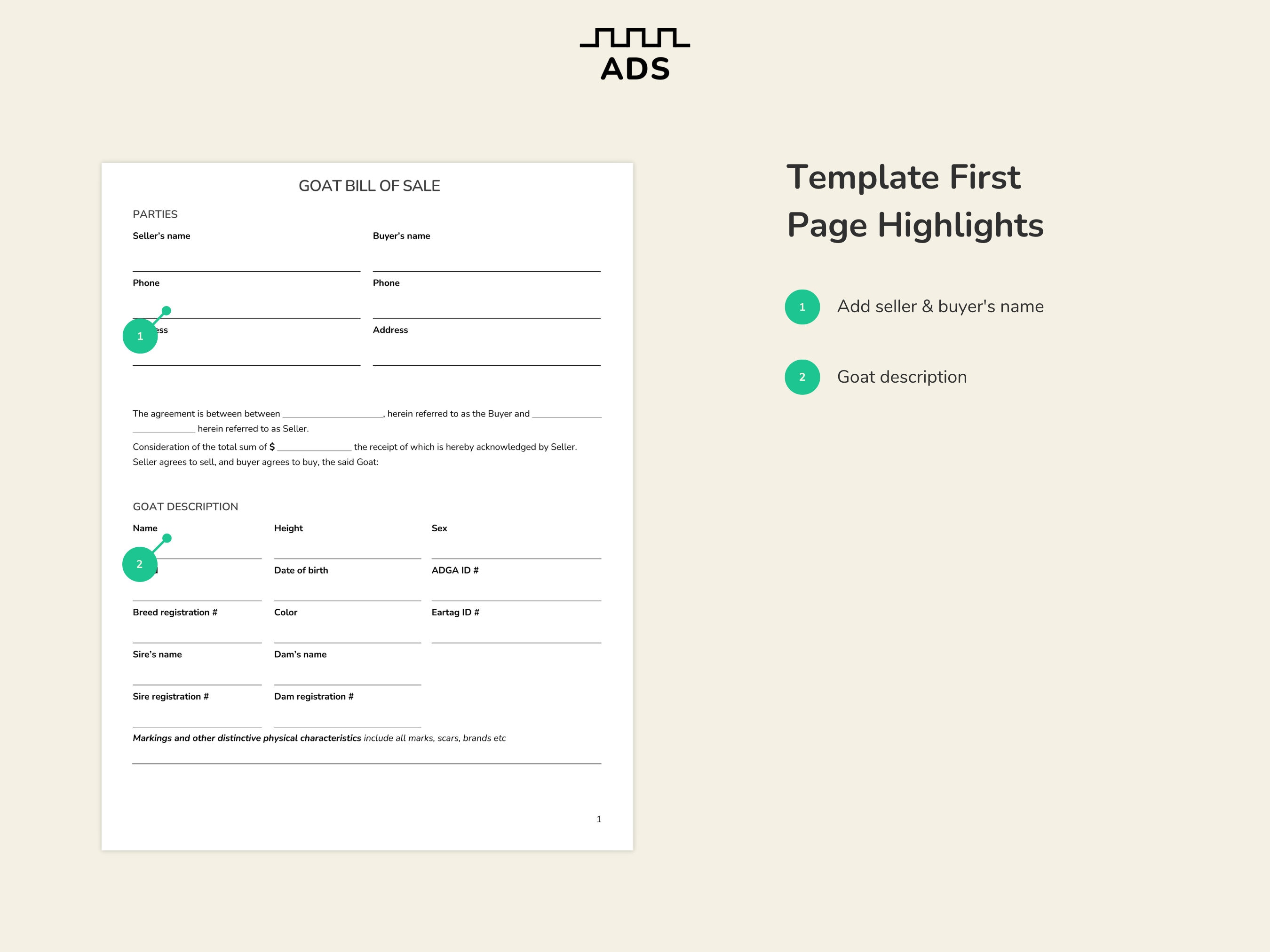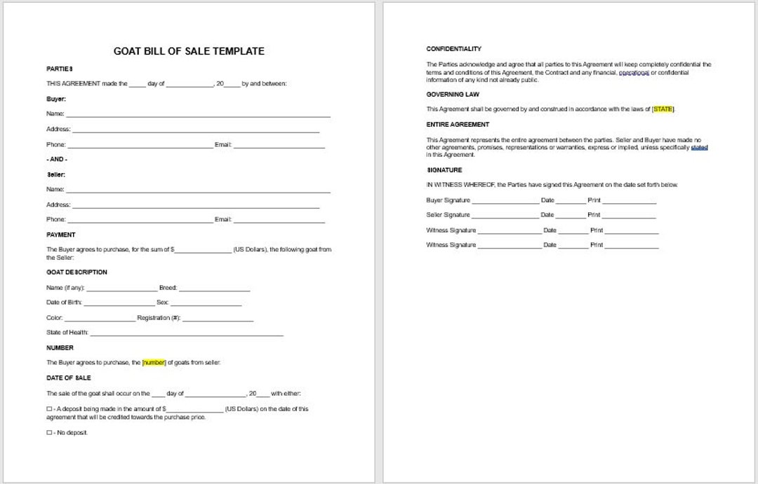 Goat Bill of Sale Printable Letter Size Word Document 3 Page Bill