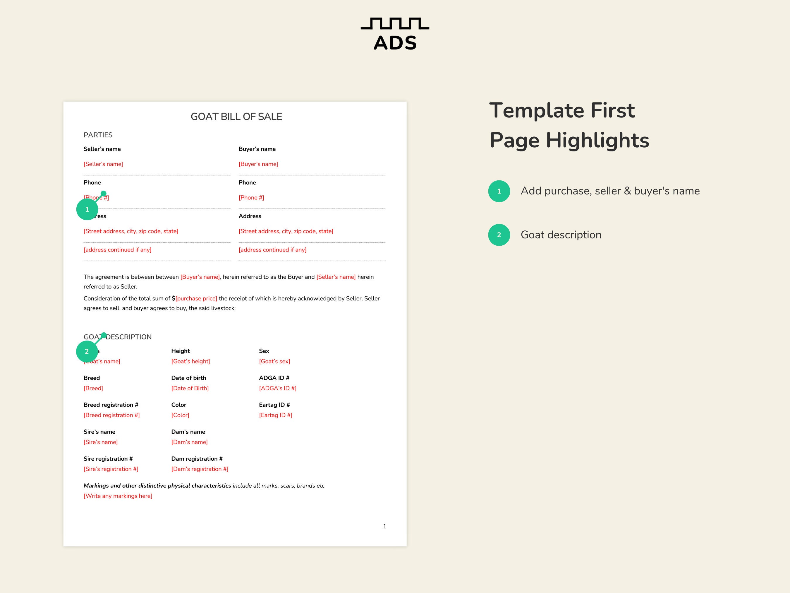 Goat Bill of Sale Editable Letter Size Word Document 3 Page Bill of