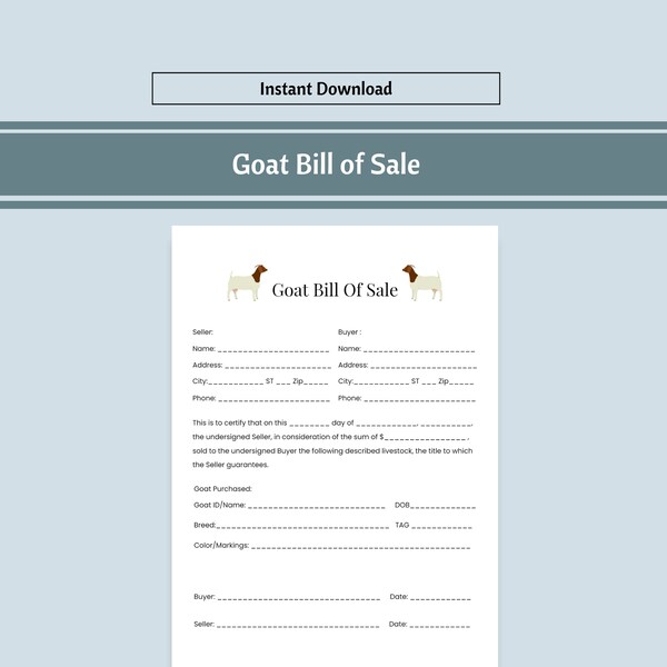 Goat Bill of Sale Goats Homestead US Letter Instant Download Digital