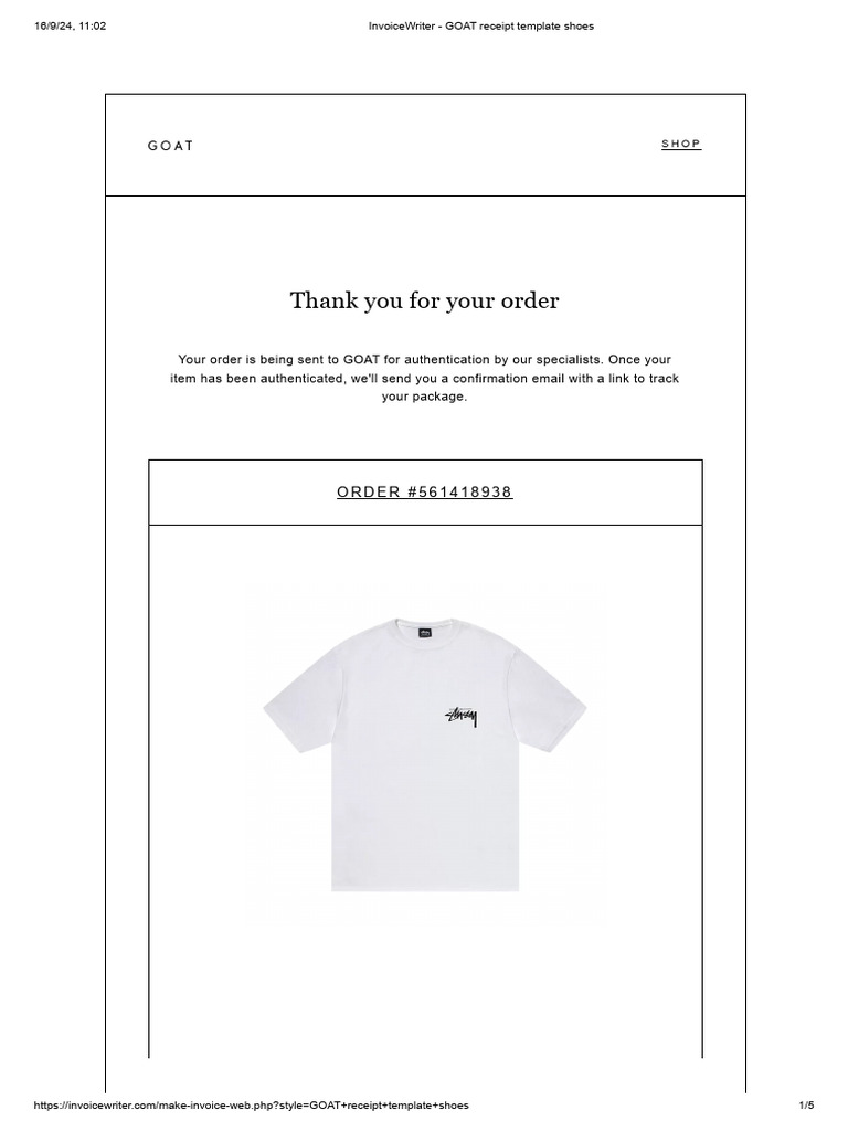 InvoiceWriter GOAT Receipt Template Stussy Icecream PDF