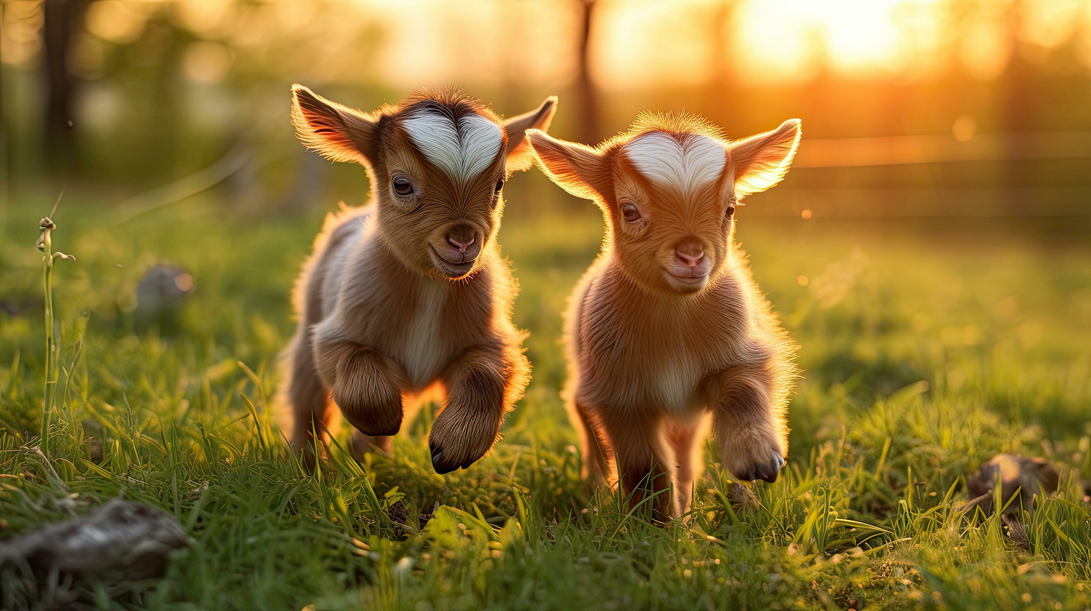 Two baby goats playing in the green field 29632604 Stock Photo at Vecteezy