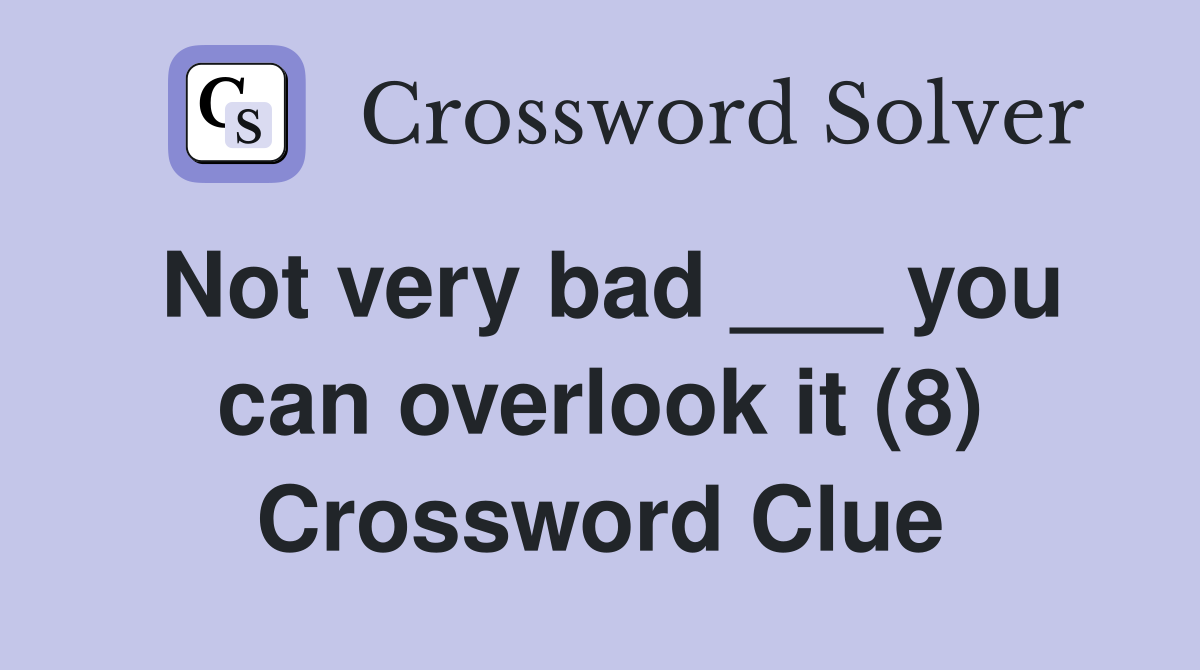 Not very bad you can overlook it (8) Crossword Clue Answers