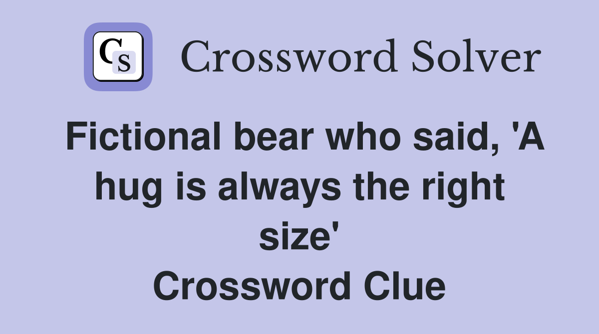 Fictional bear who said #39 A hug is always the right size #39 Crossword