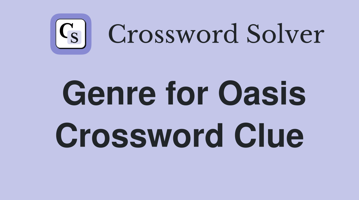 Genre for Oasis Crossword Clue Answers Crossword Solver
