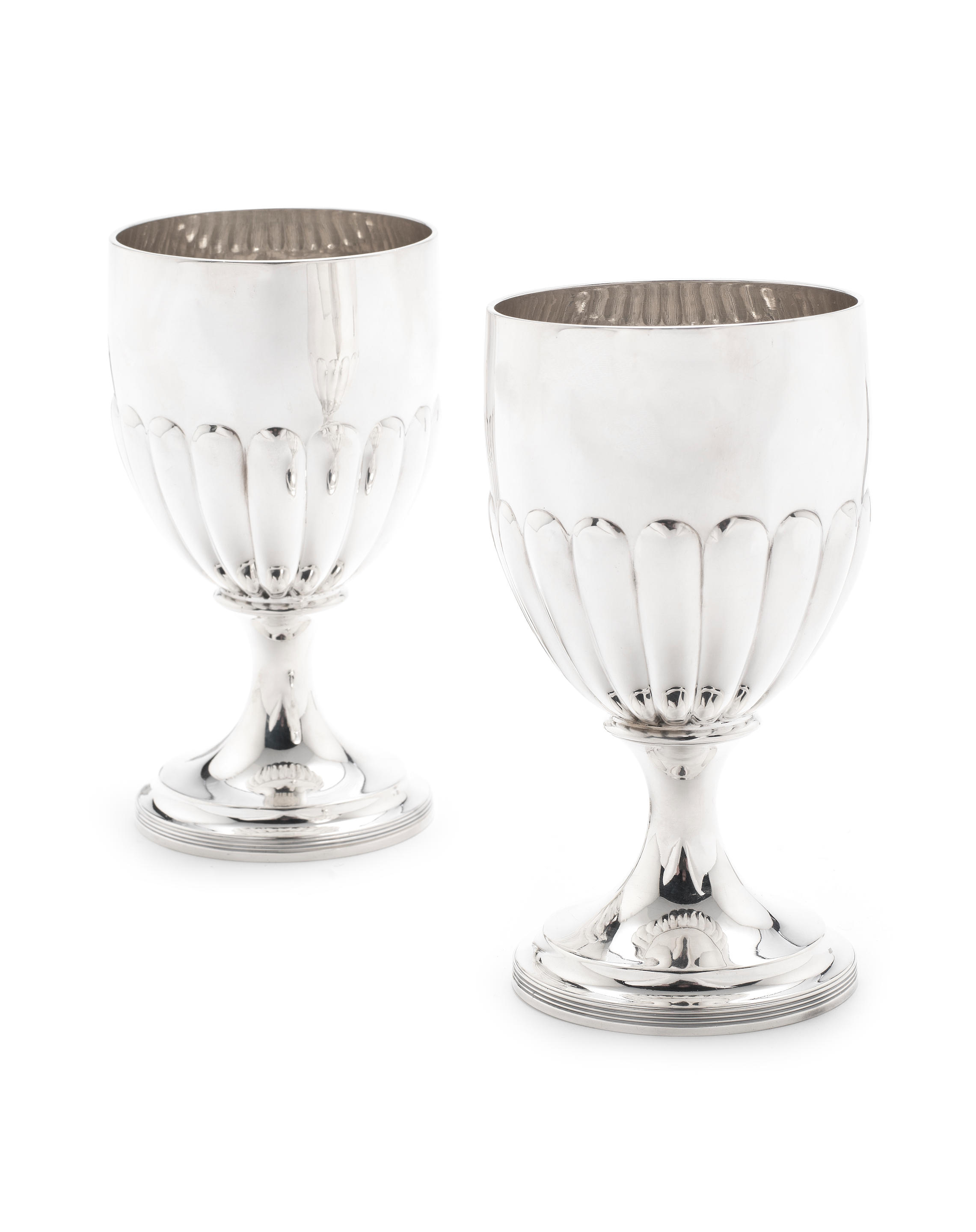 Bonhams : A pair of George III silver goblets by Charles Hollinshed