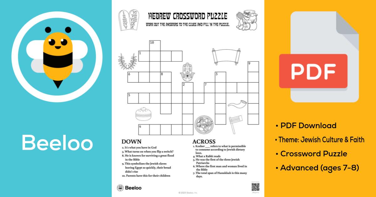 Jewish themed Crossword Puzzles • Beeloo Printable Crafts and