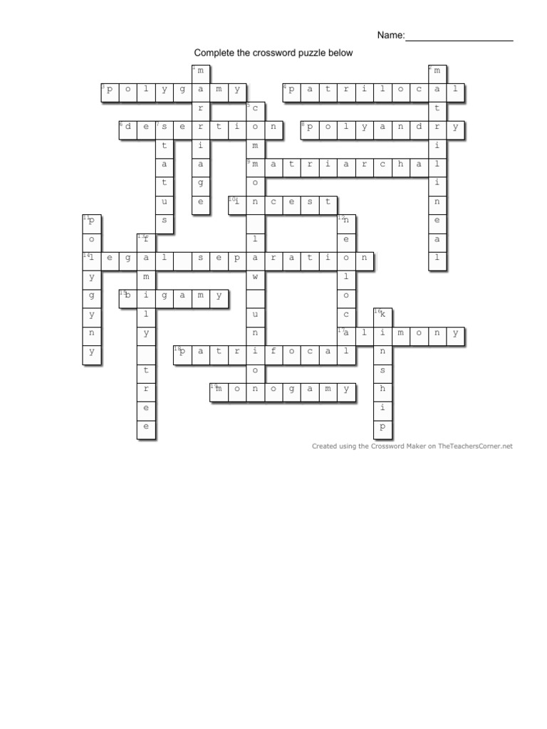 Crossword SocStudFamilyAnswers PDF Family Marriage