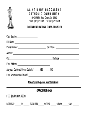 Fillable Online smmcorona GODPARENT BAPTISM CLASS REGISTER Form