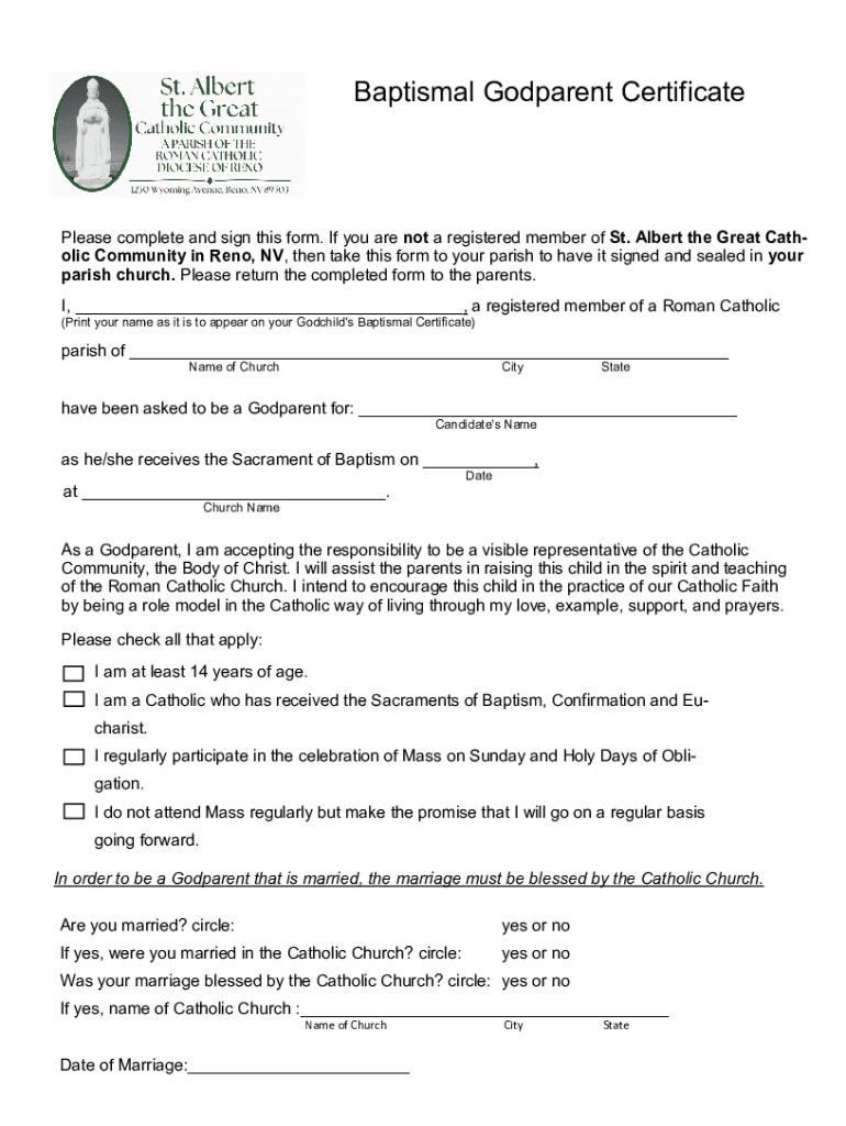 Fillable Online Baptism Godparent CertificateST ALBERT THE GREAT