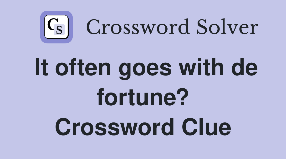 It often goes with de fortune? Crossword Clue Answers Crossword Solver