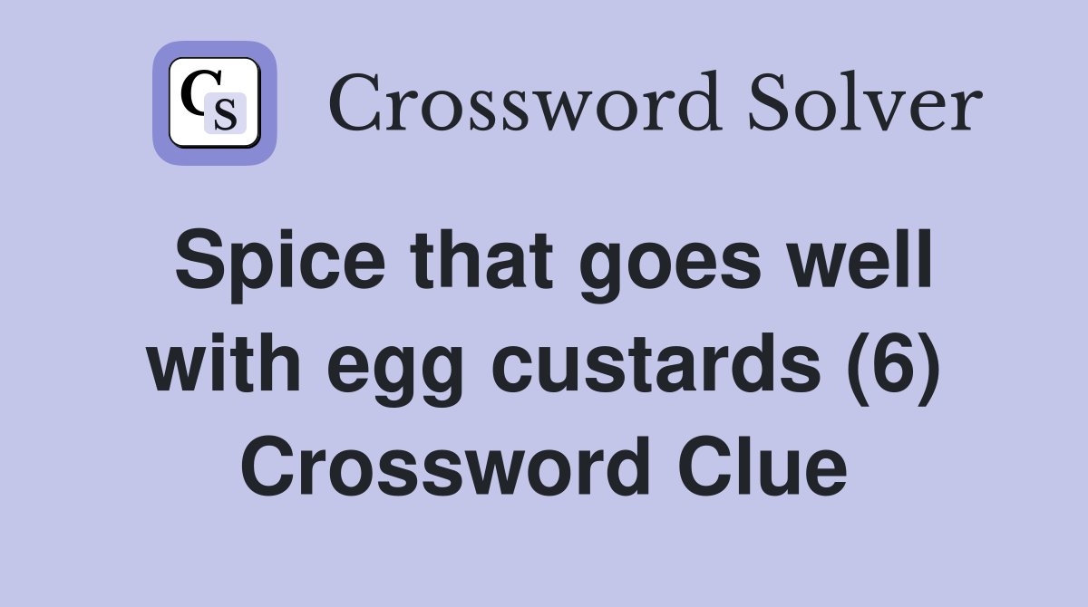 Spice that goes well with egg custards (6) Crossword Clue Answers