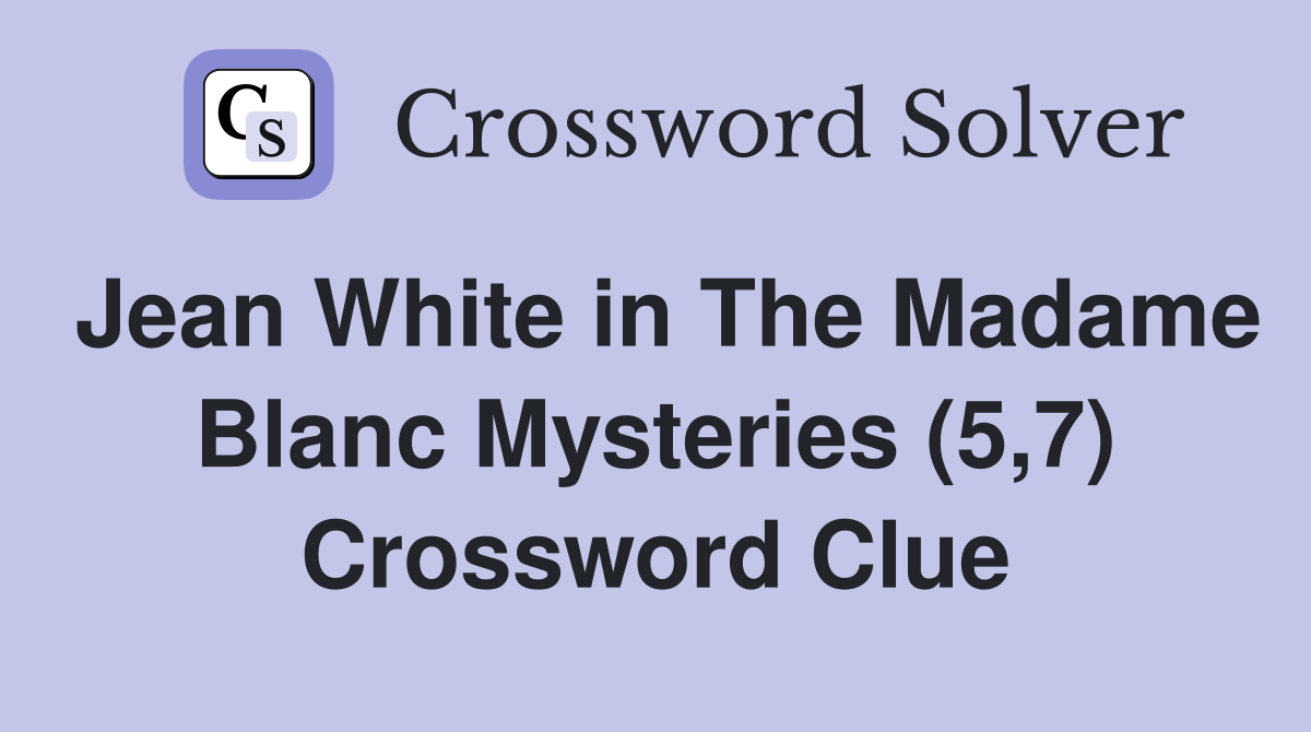 Jean White in The Madame Blanc Mysteries (5 7) Crossword Clue Answers