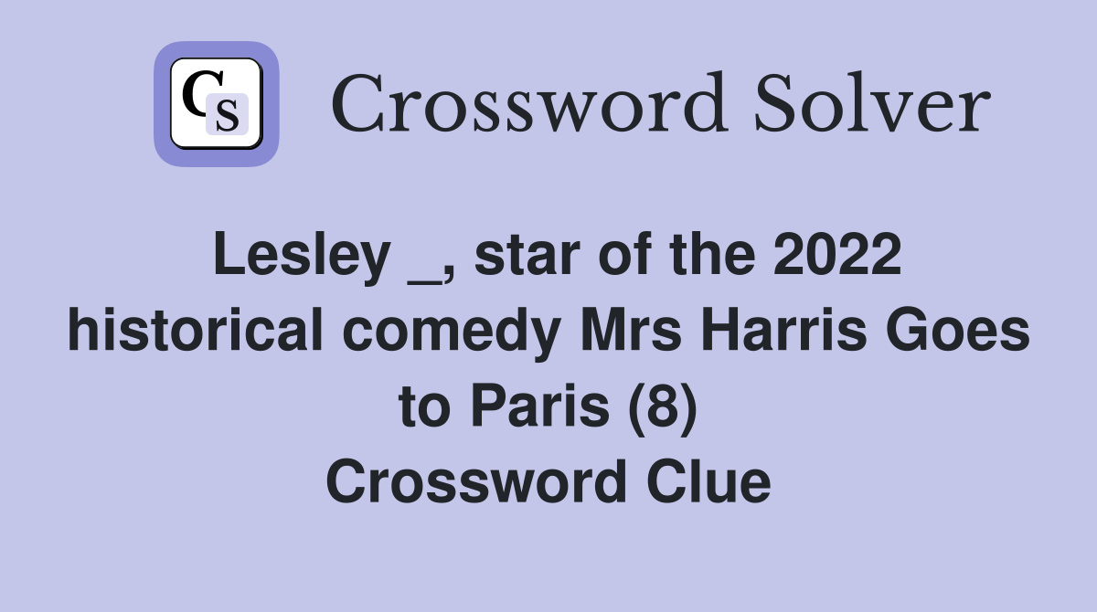 Lesley star of the 2022 historical comedy Mrs Harris Goes to Paris