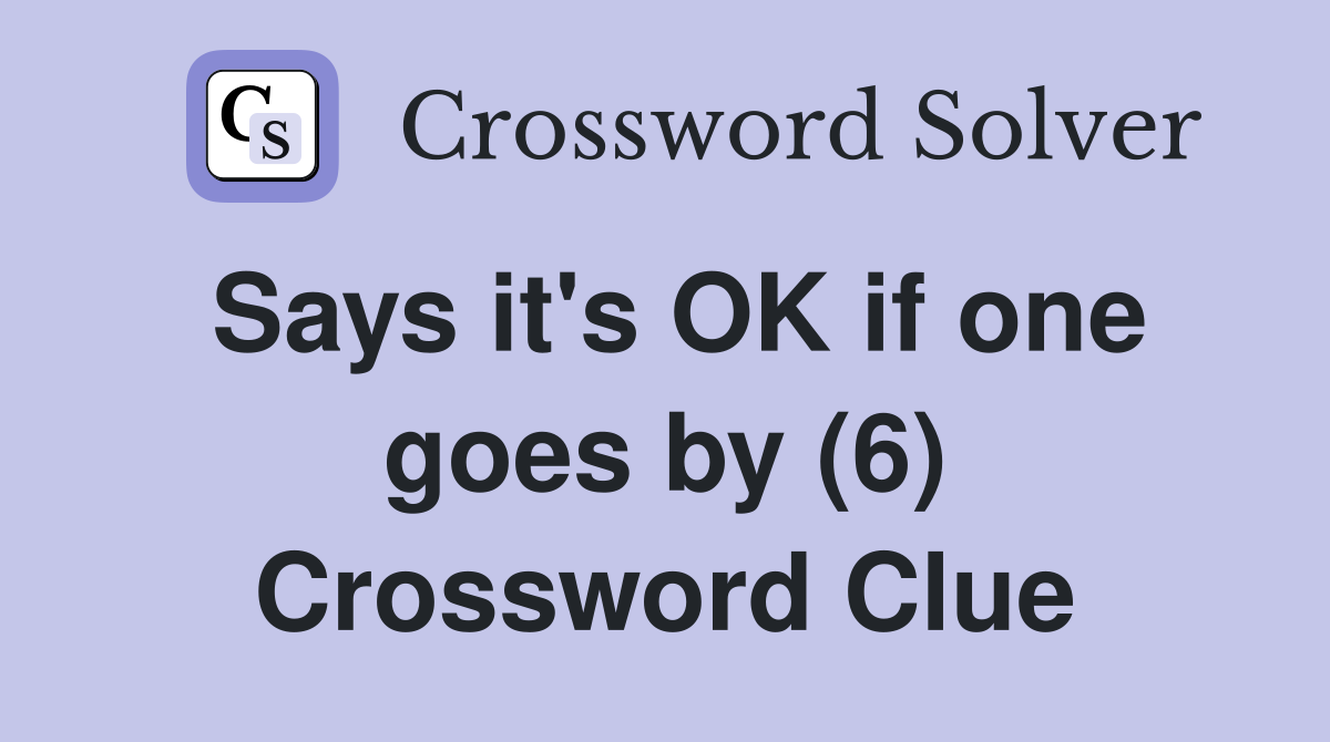 Says it #39 s OK if one goes by (6) Crossword Clue Answers Crossword Solver