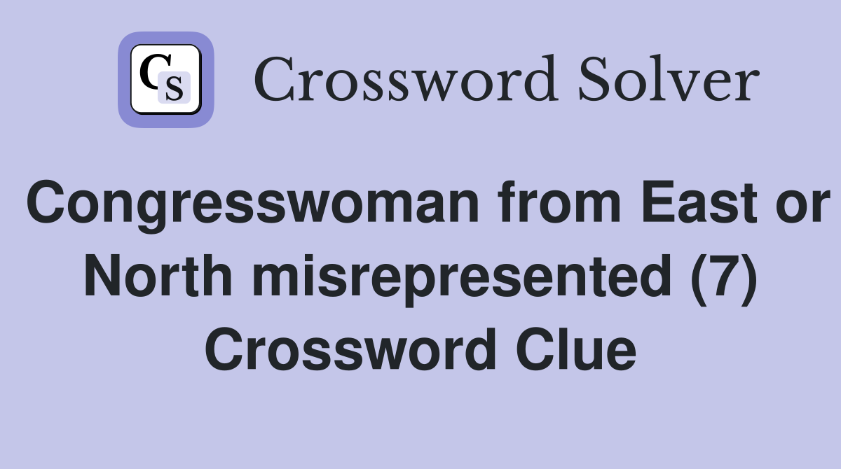 Congresswoman from East or North misrepresented (7) Crossword Clue
