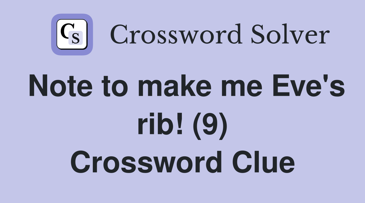 Note to make me Eve #39 s rib (9) Crossword Clue Answers Crossword Solver