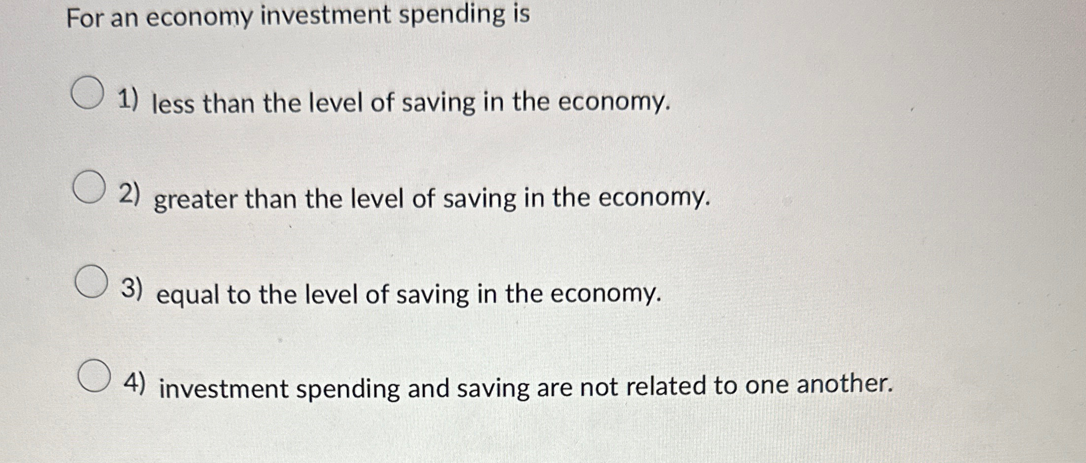 Solved For an economy investment spending isless than the Chegg com