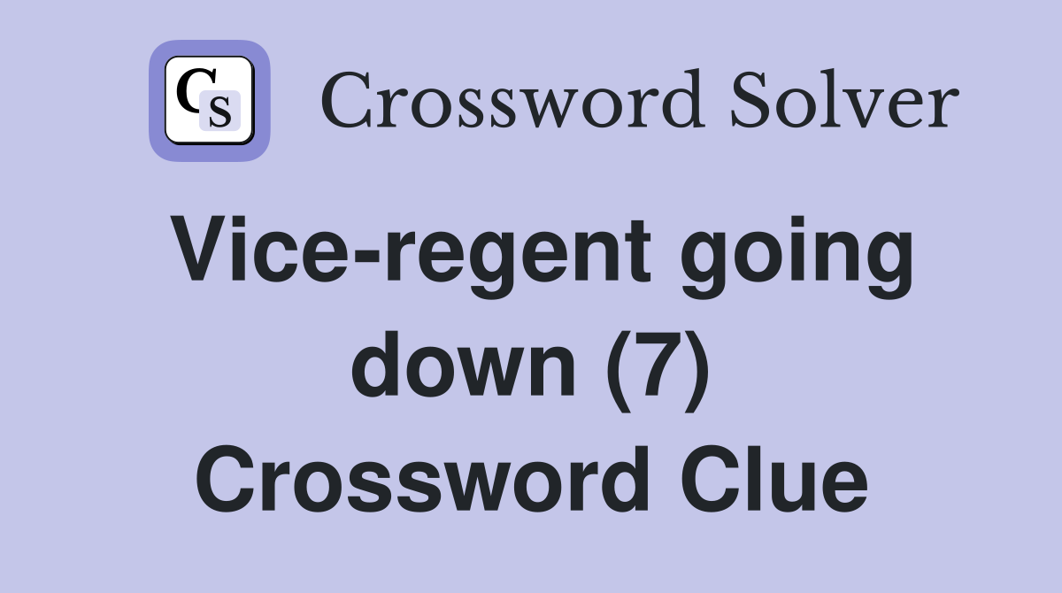 Vice regent going down (7) Crossword Clue Answers Crossword Solver