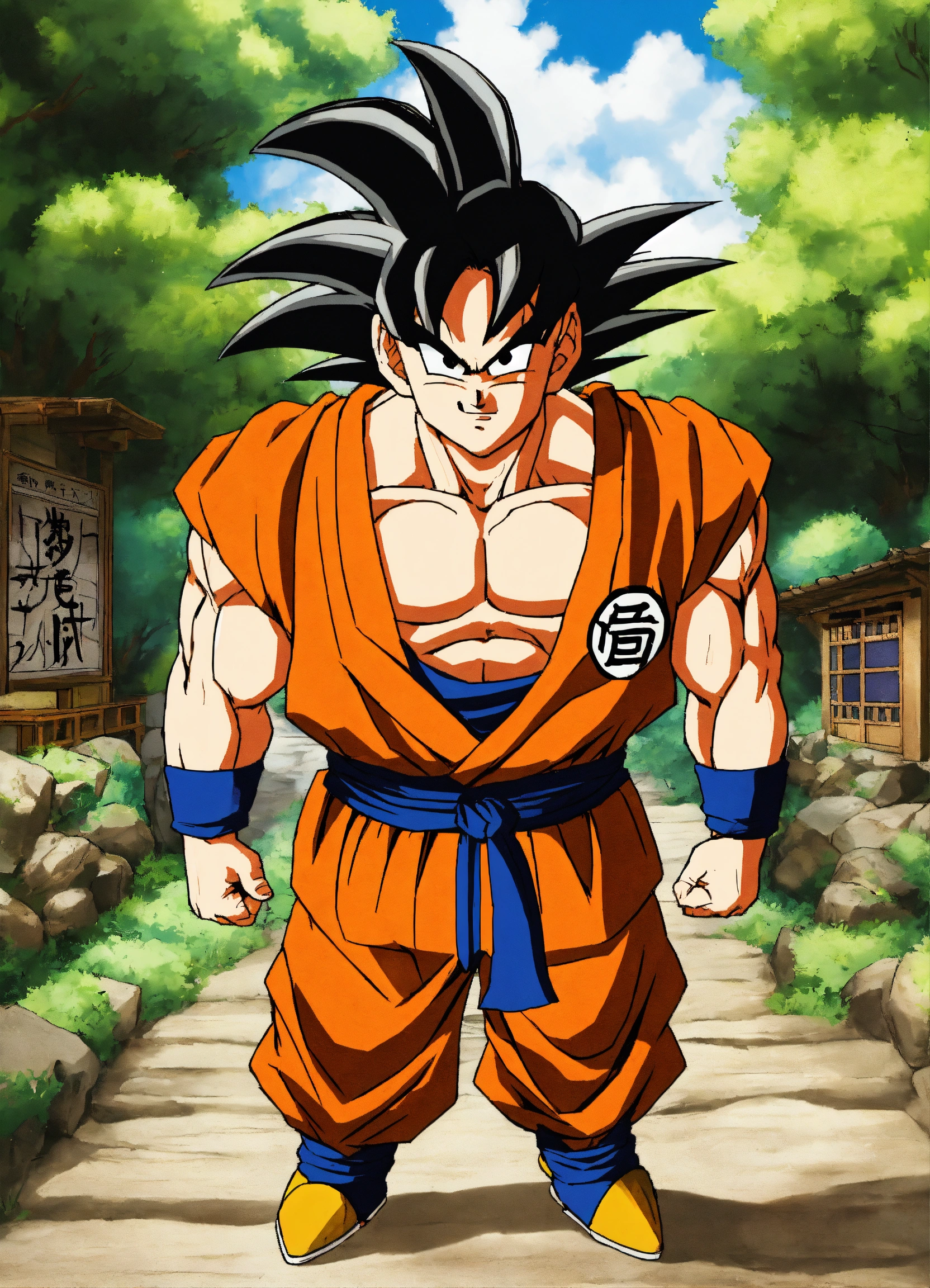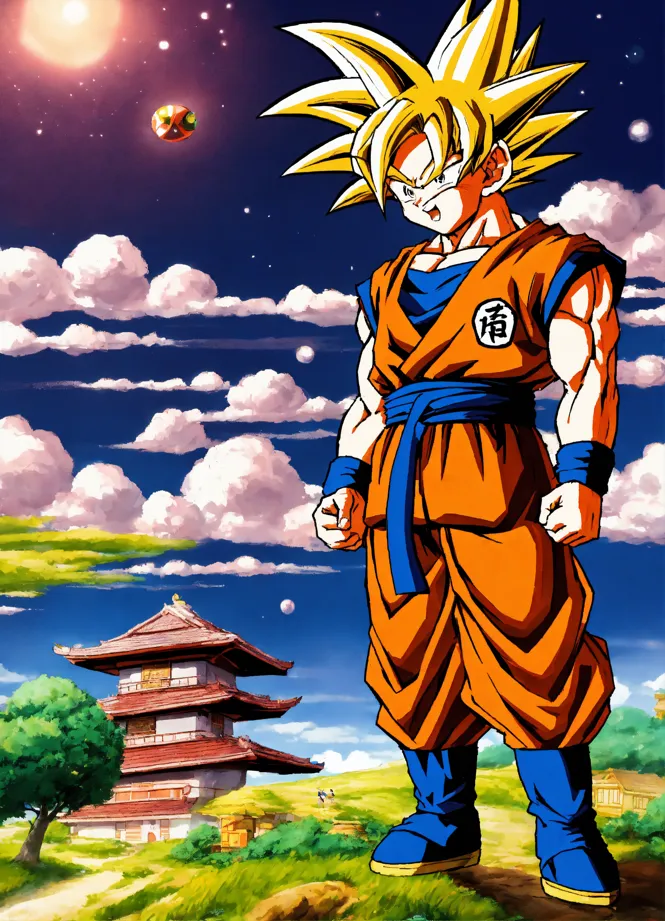 Lexica Goku in his birthday wearing amor pant under the cloudy sky