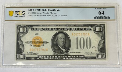 1928 $100 Hundred Dollar Gold Certificate Note Fr 2405 PCGS Choice New