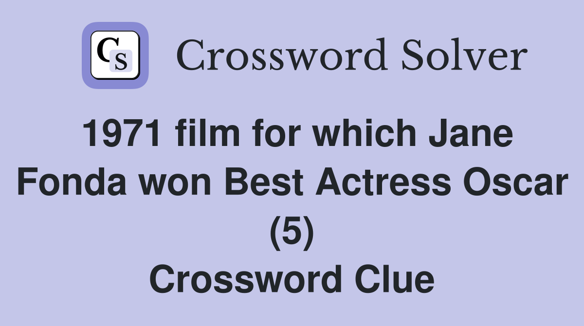 1971 film for which Jane Fonda won Best Actress Oscar (5) Crossword