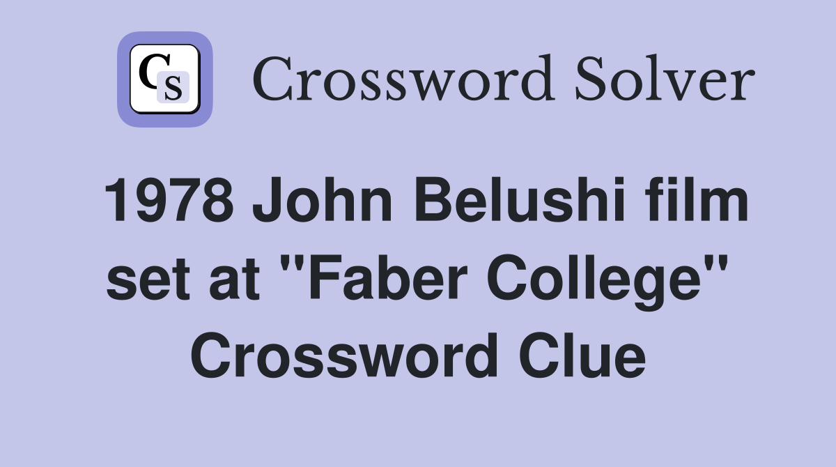 1978 John Belushi film set at quot Faber College quot Crossword Clue Answers