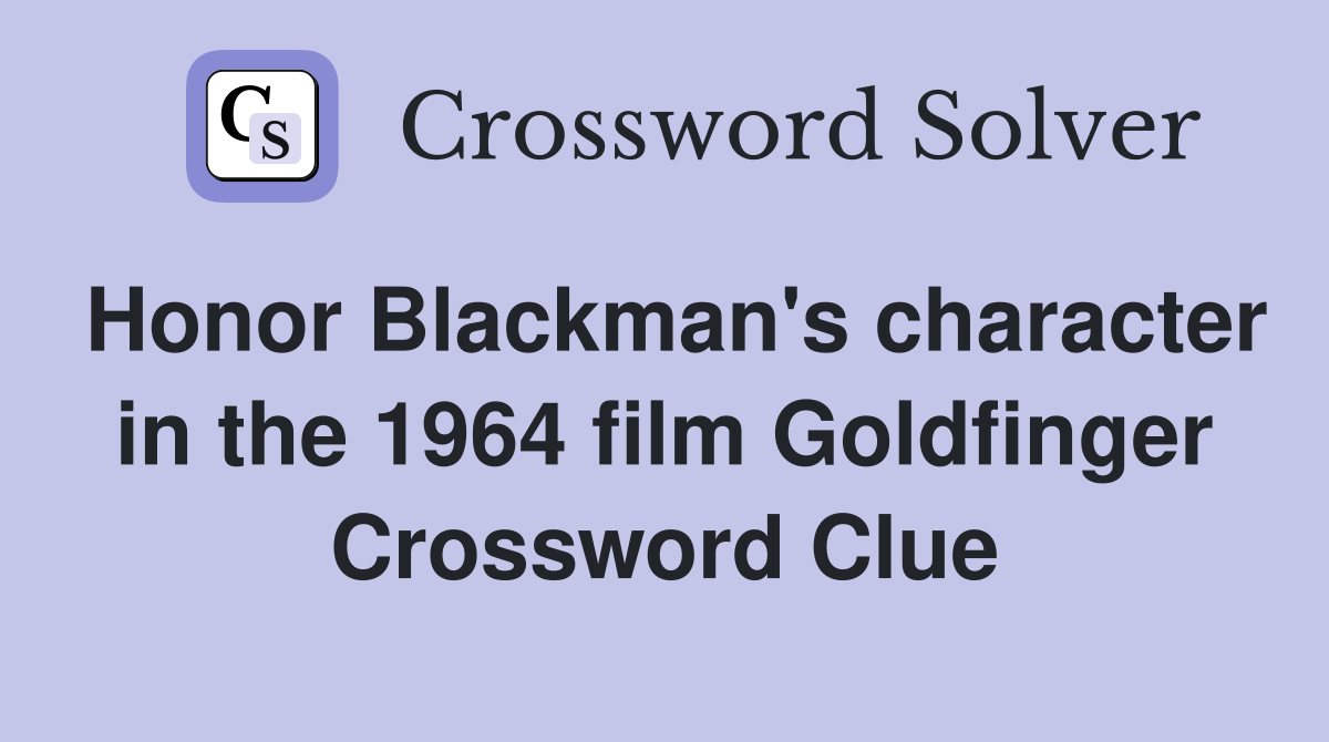 Honor Blackman #39 s character in the 1964 film Goldfinger Crossword Clue