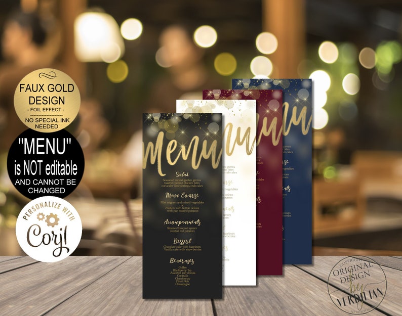 Gold Menu Template Printable Menu Cards Instant Download Etsy