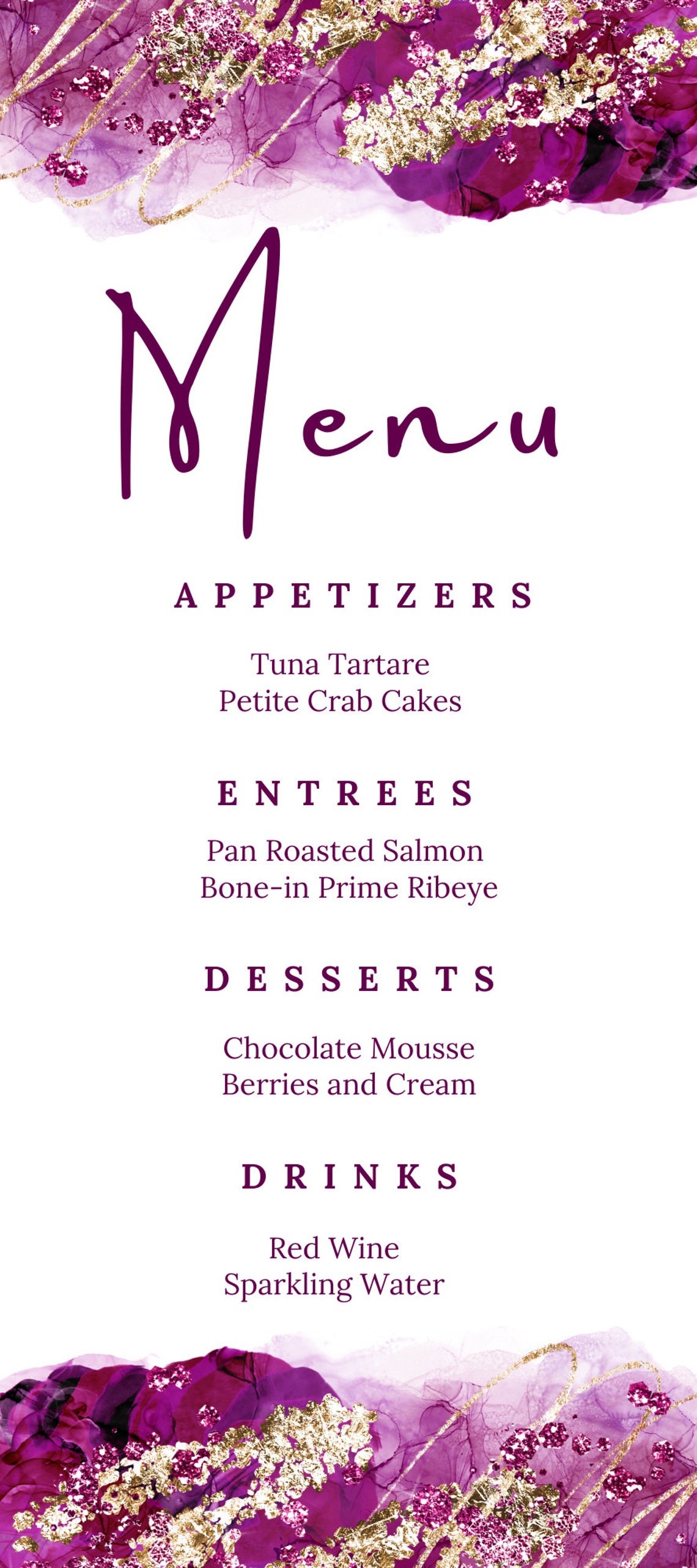 Black Burgundy and Gold Menu Template and Drink Menu Event Menu