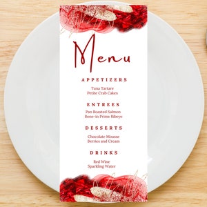 Red and Gold Menu Card Template Editable Event Menu Card Printable