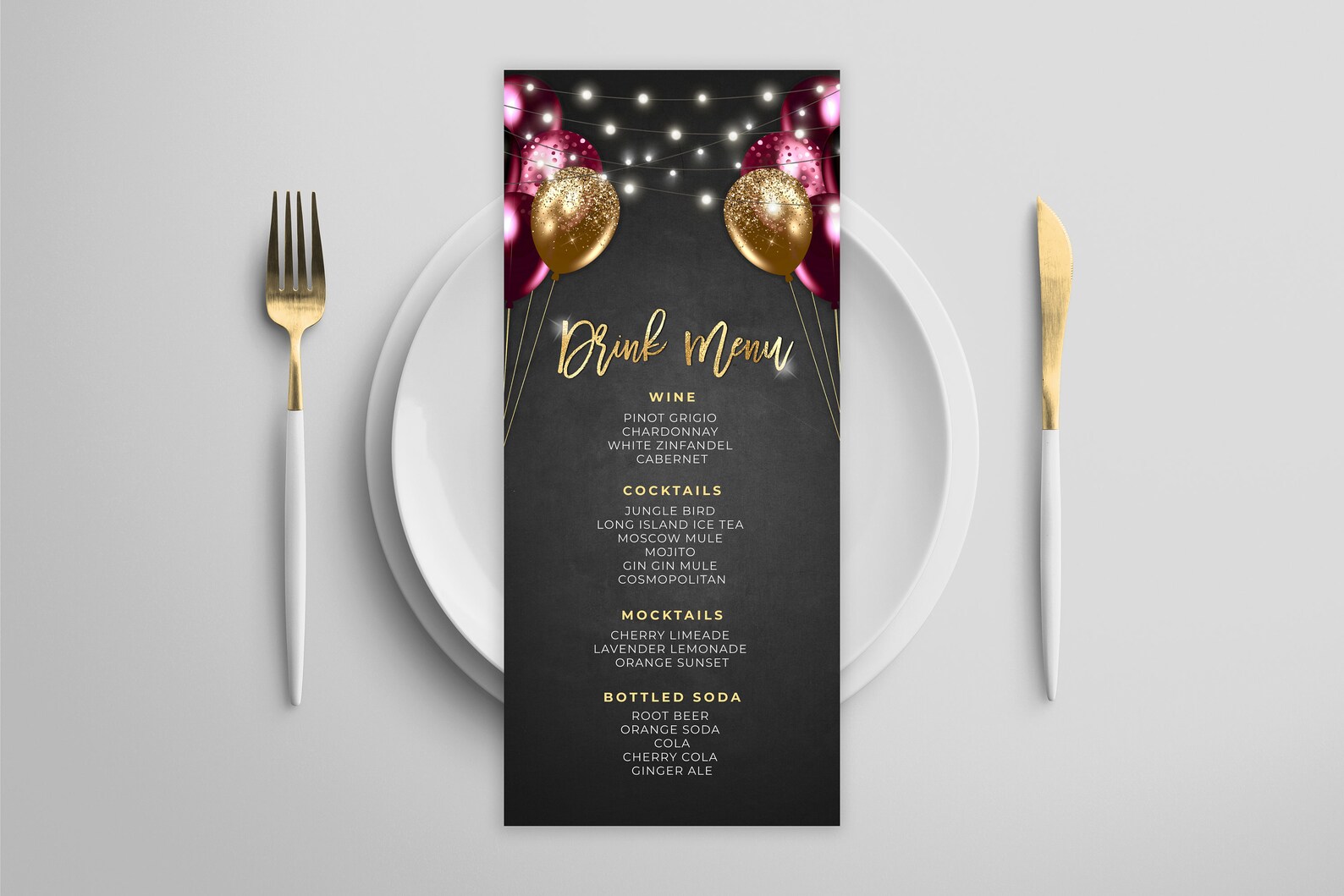 White Gold Menu and Program Template Birthday Party Menu Cards Digital