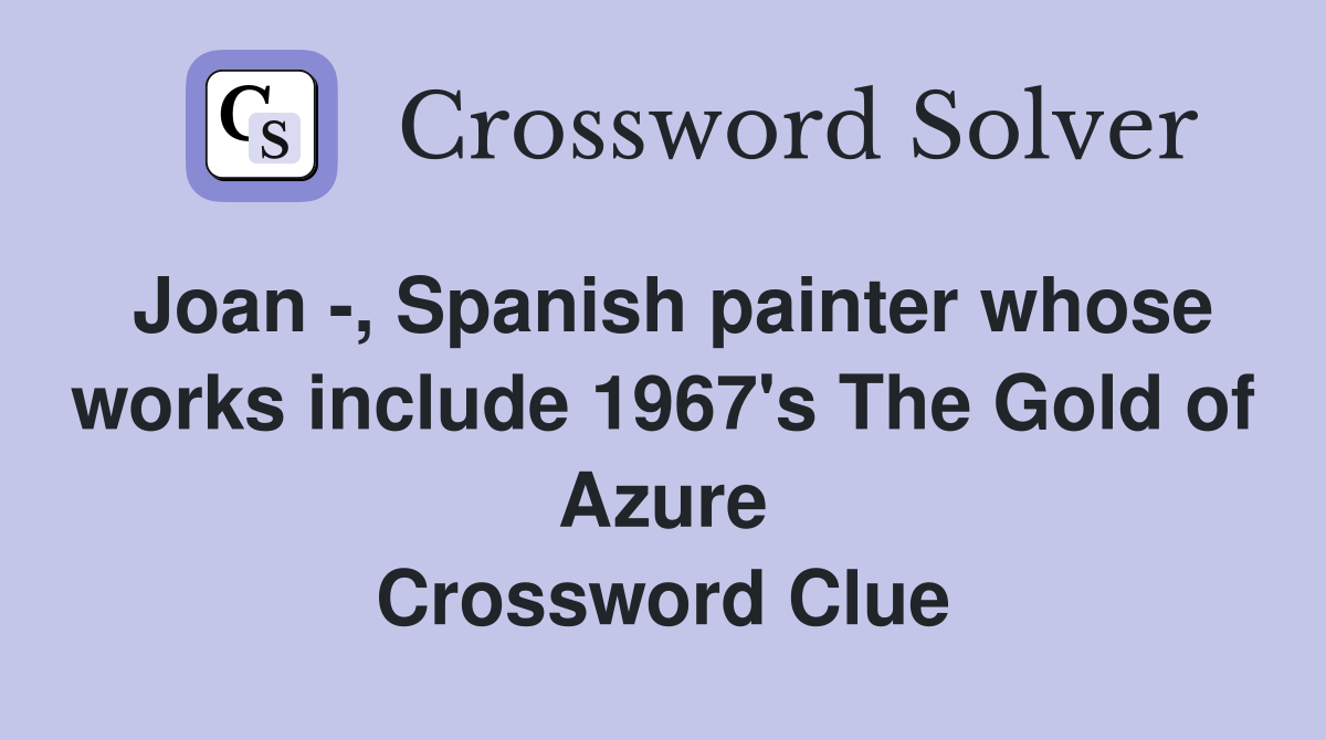 Joan Spanish painter whose works include 1967 #39 s The Gold of Azure