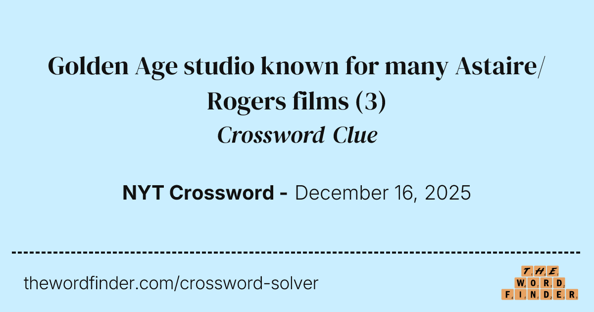 Golden Age studio known for many Astaire/Rogers films NYT Crossword