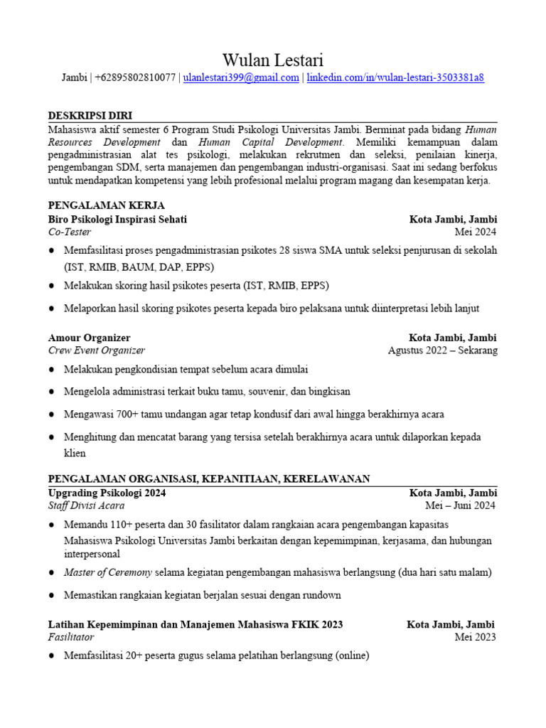 CV Template Goldman Sachs Indonesia PDF Karier Perkembangan
