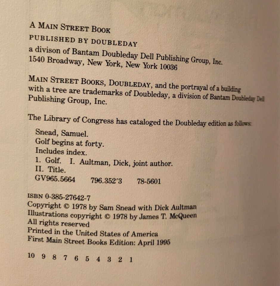 Golf Begins at Forty by Sam Snead (1995 Reprint) Signed Personalized